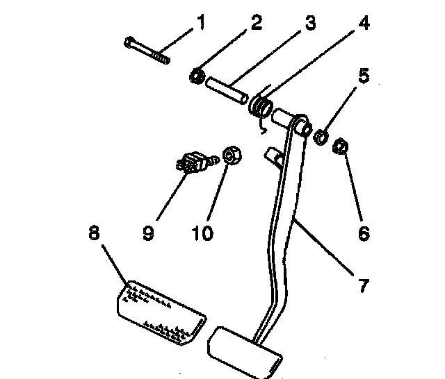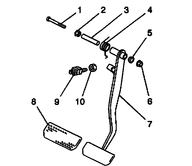 5. Install the brake pedal (7) and the pivot pin bolt (1) to the bracket.