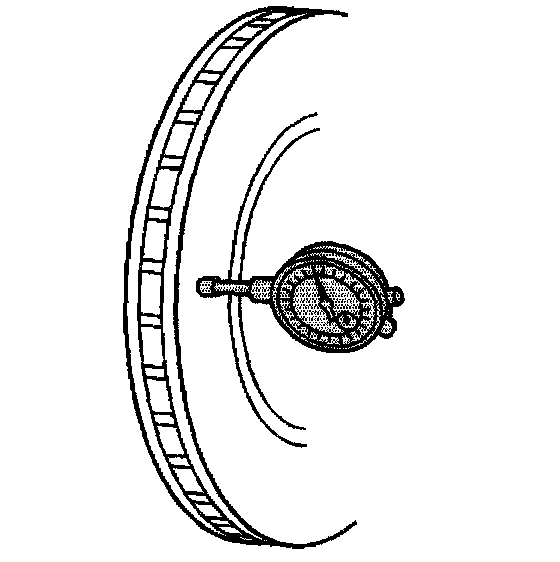 Important: Brake rotor assembled lateral runout (LRO) exceeding the maximum allowable specification can cause thickness variation to develop in the brake rotor, usually between 4,800 - 11,300 km (3,000 - 7,000 ml).
