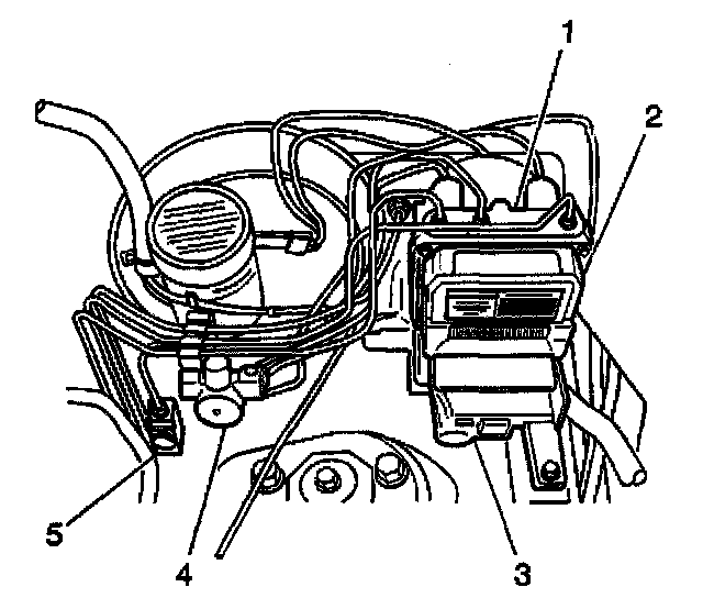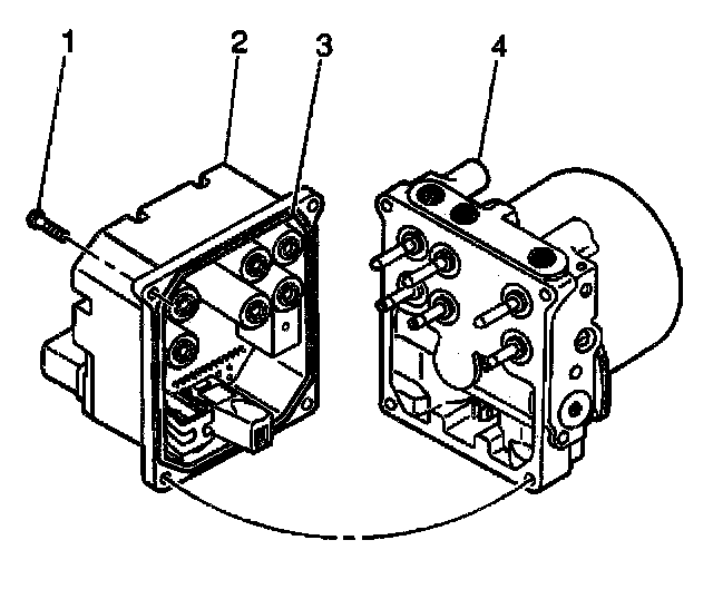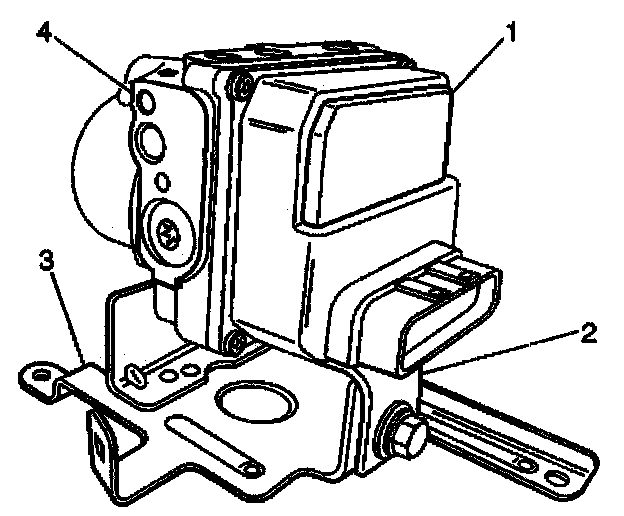 8. Remove the BPMV (4) and the EBCM (1) as an assembly from the vehicle.