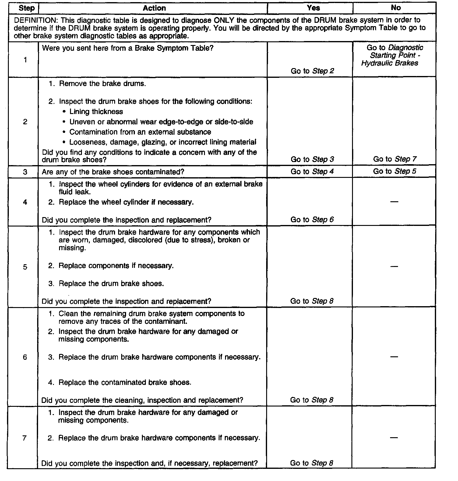 Drum Brake System Diagnosis