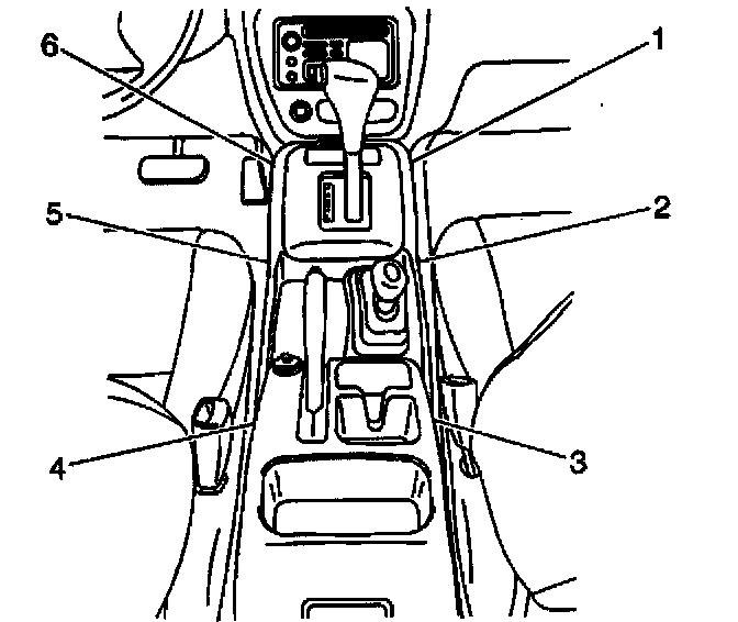 4. Remove the 4 screws (1,3,4,6), the 2 clips (2,5), and lift up the console.
