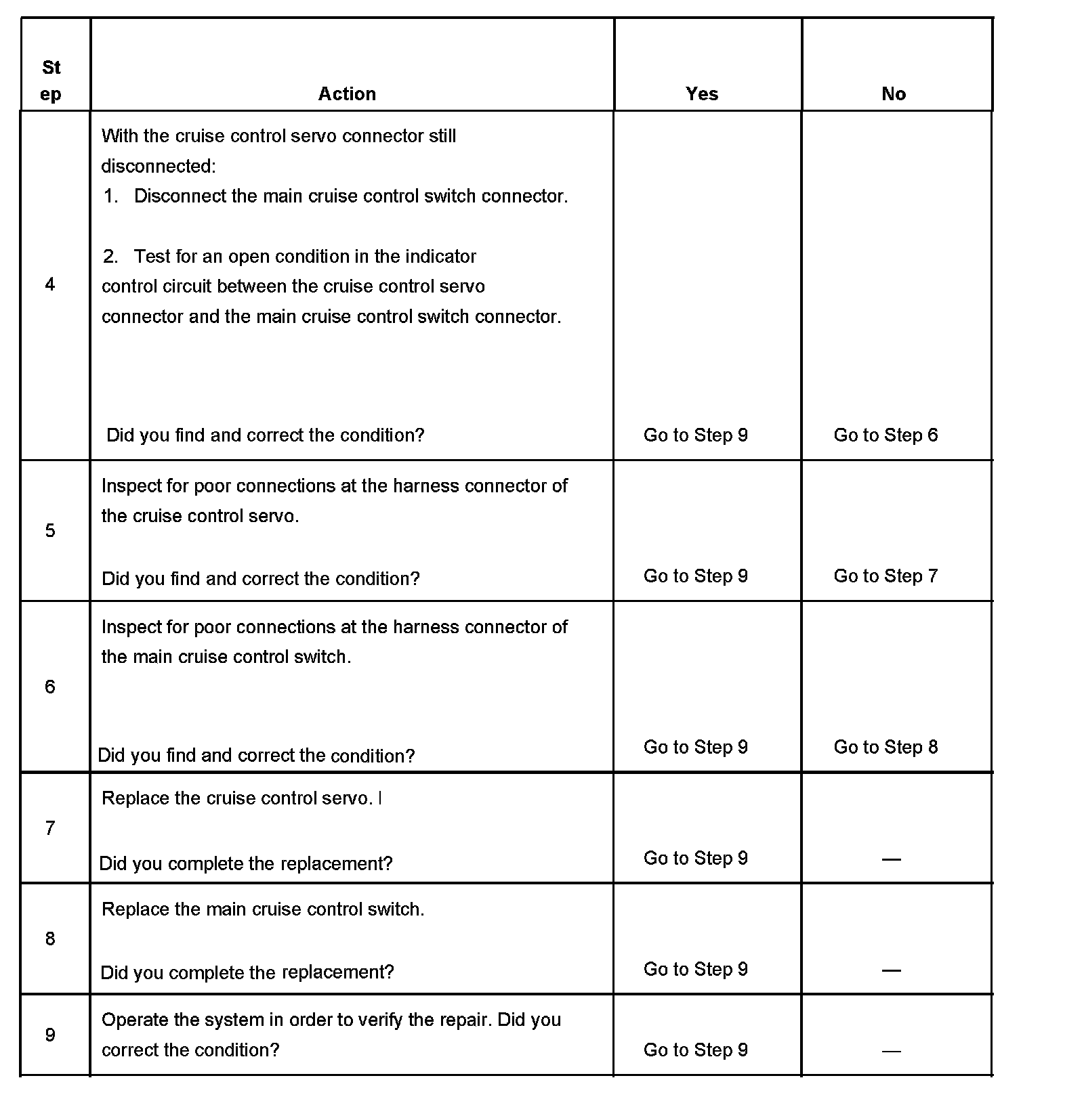 Cruise Control - Switch Indicator Inoperative