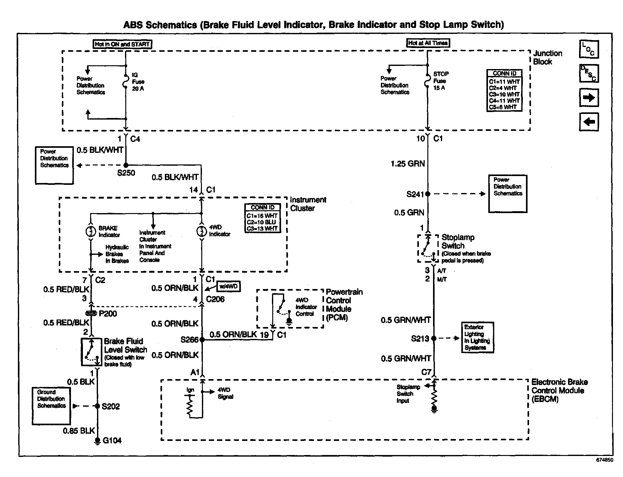 ABS Schematics: Brake Fluid Level Indicator, Brake Indicator And Stop Lamp Switch: