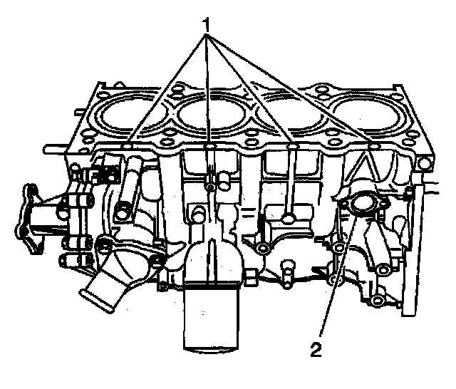 2. Insert the engine coolant heater into the hole in the engine block (2).
