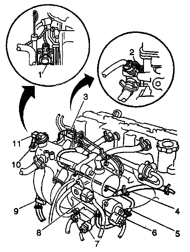 12. Install the EVAP canister purge valve to the intake manifold. Secure with 1 bolt.