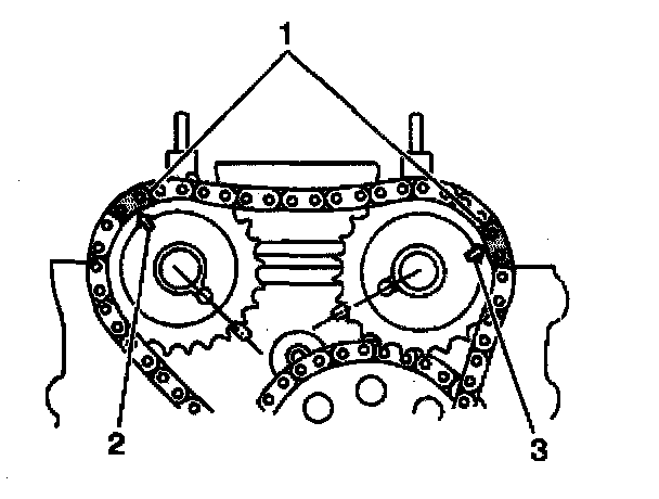 - The timing marks must be correctly aligned before disassembly, in order to correctly install the timing chains.