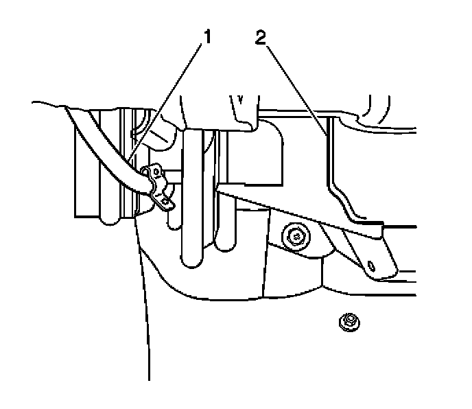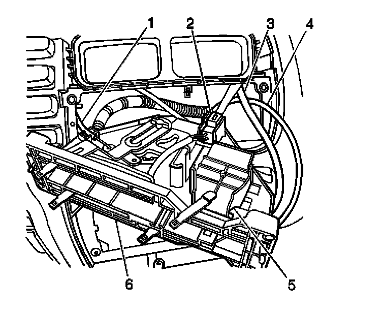 1. Remove the temperature control cable (1) from the clip at the heater case. Unhook the cable from the temperature door pin.
