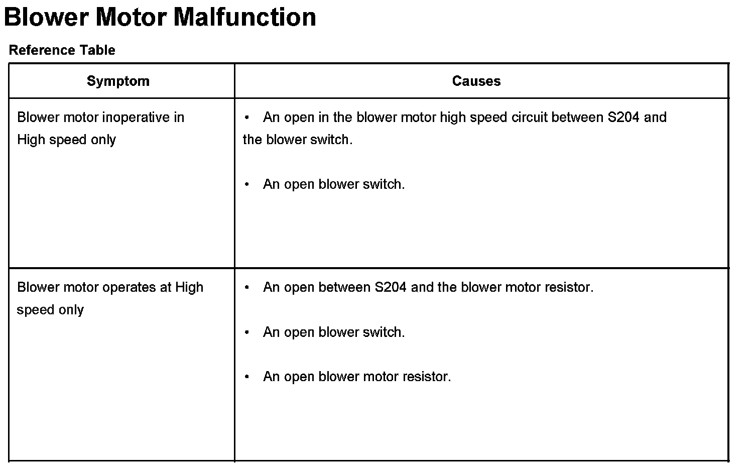 Blower Motor Malfunction