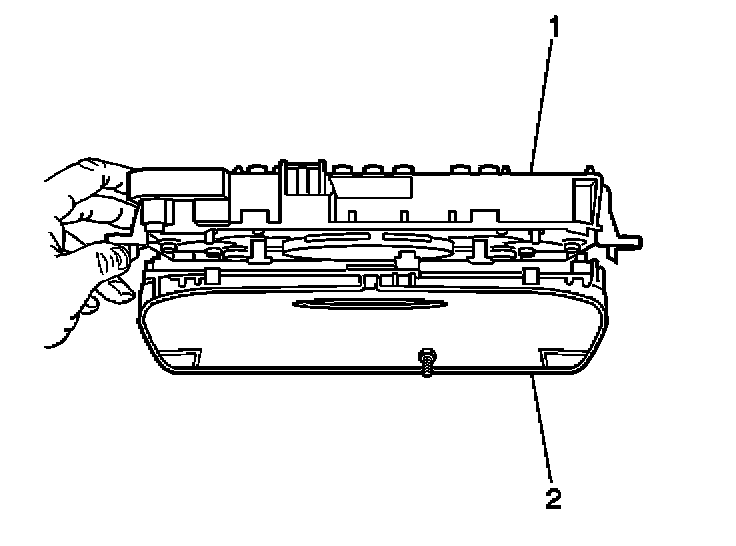 2. Install the instrument cluster lens and bezel assembly (2) to the instrument cluster (1). Ensure that the plastic retaining tabs are fully engaged.