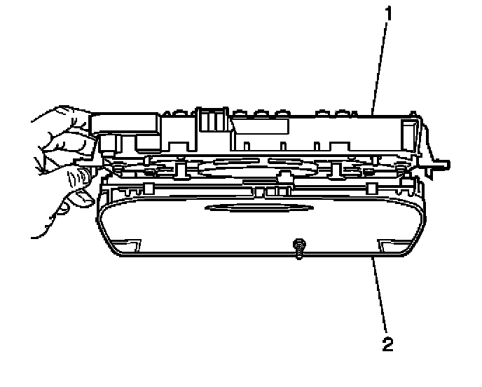 2. Install the instrument cluster lens and bezel assembly (2) to the instrument cluster (1). Ensure that the plastic retaining tabs are fully engaged.
