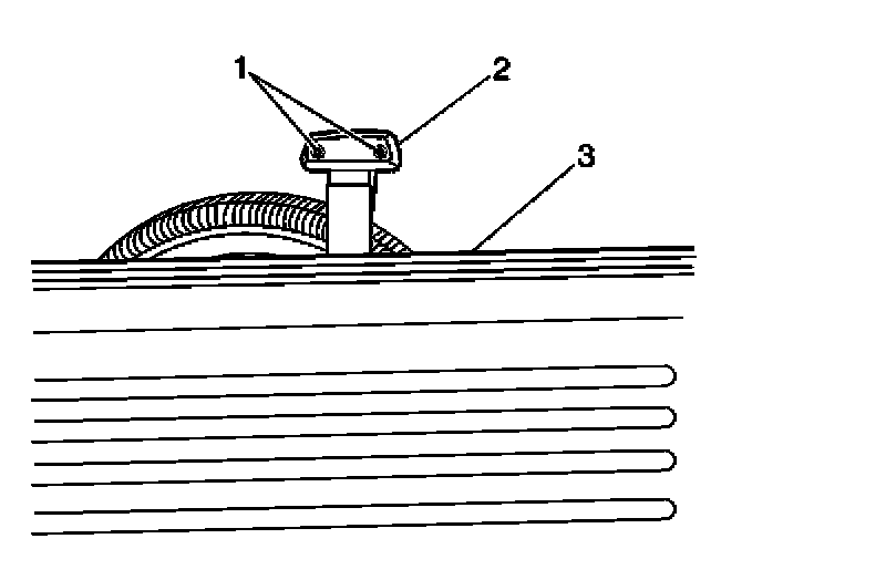 2. Remove the 2 screws (1) which secure the high mounted stop lamp (2).