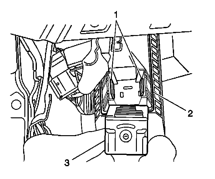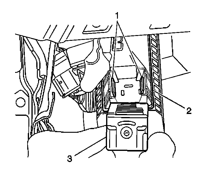 1. Install the turn/hazard flasher (3) to the junction block (2). Ensure that the retaining tabs (1) are completely engaged.