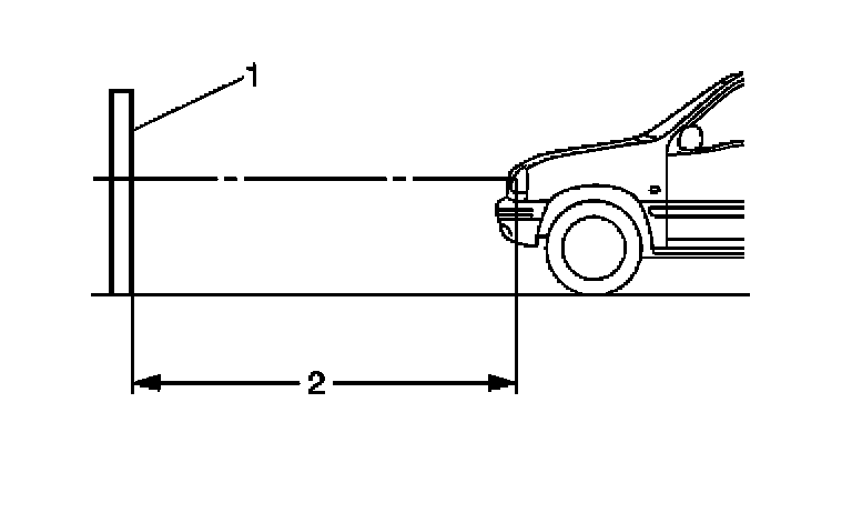 - The aiming area should be darkened and large enough to allow for the vehicle and an additional 10 m (32.8 ft), measured from the face of the headlamps (2) to the front of the screen (1).