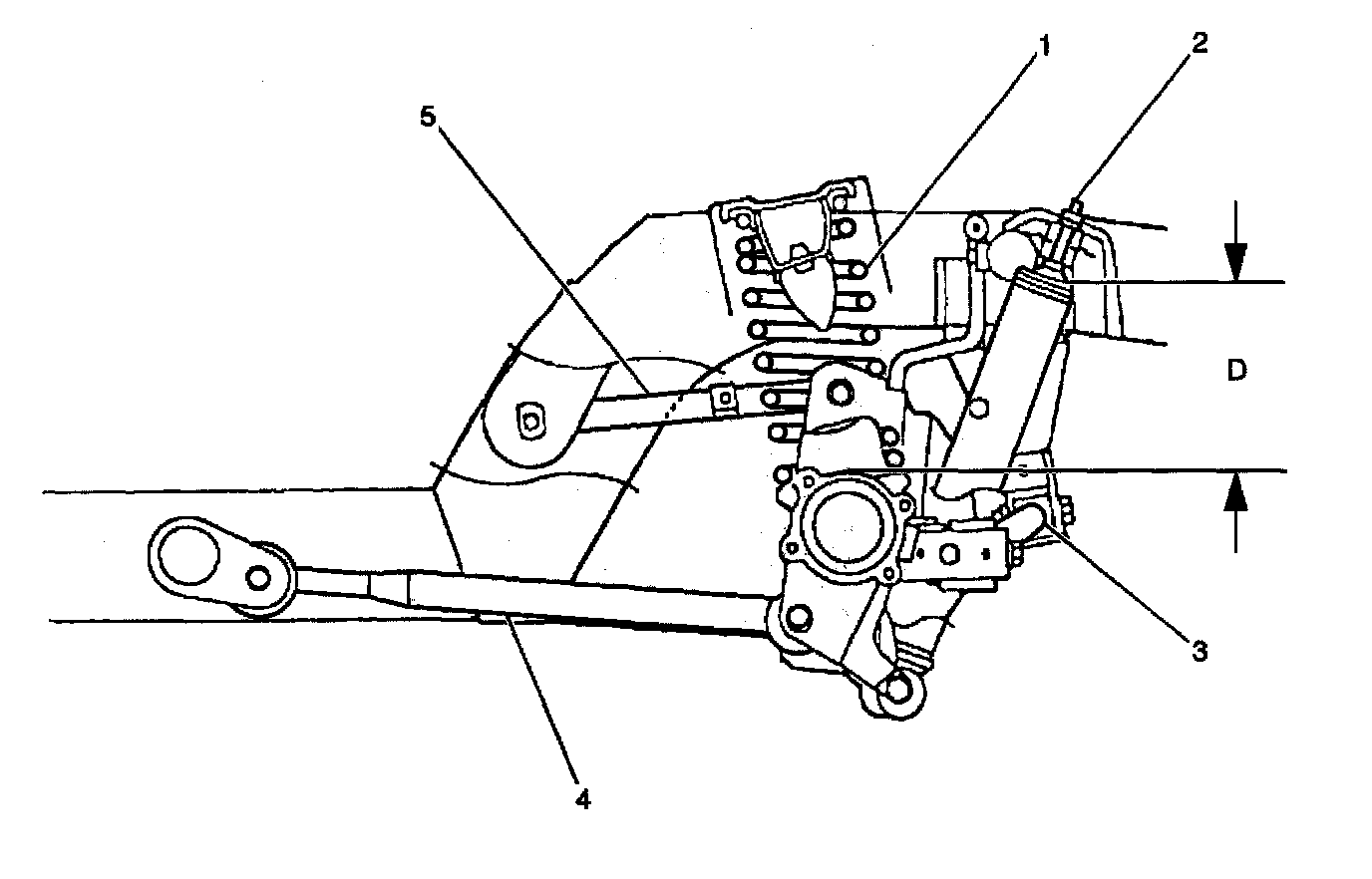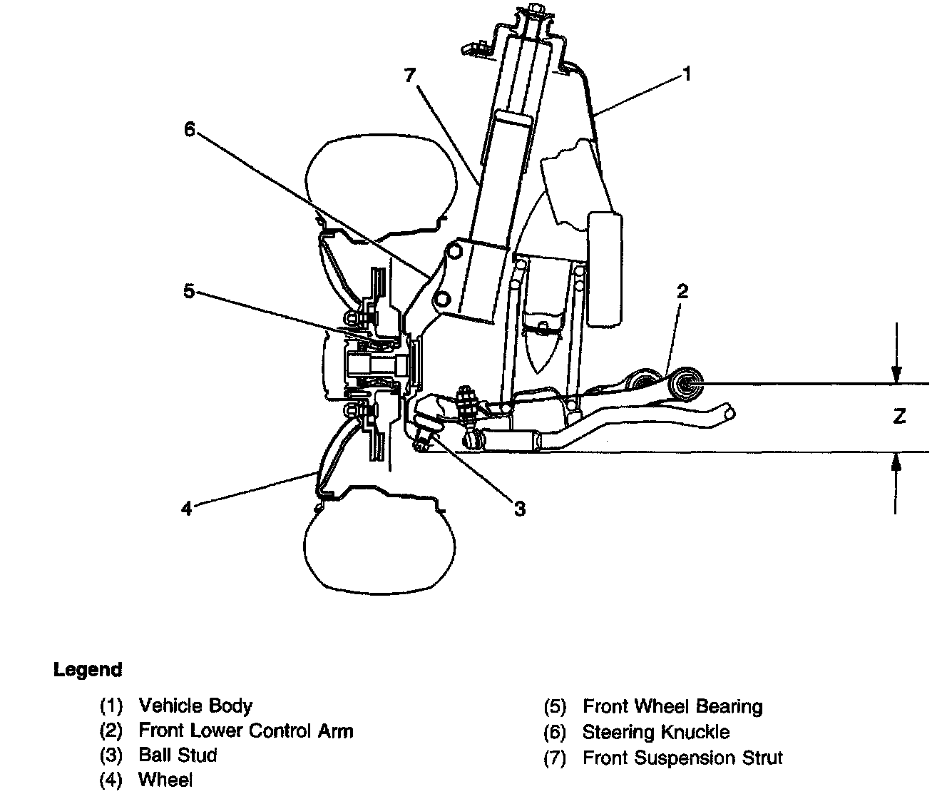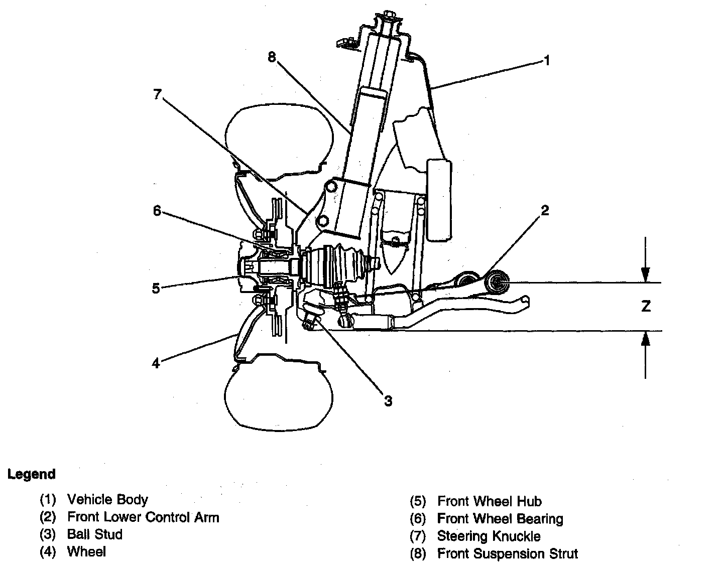 4. Compare the measurement to the specification. If the Z dimension is not within 10 mm (0.4 in of the specification, replace the front springs.