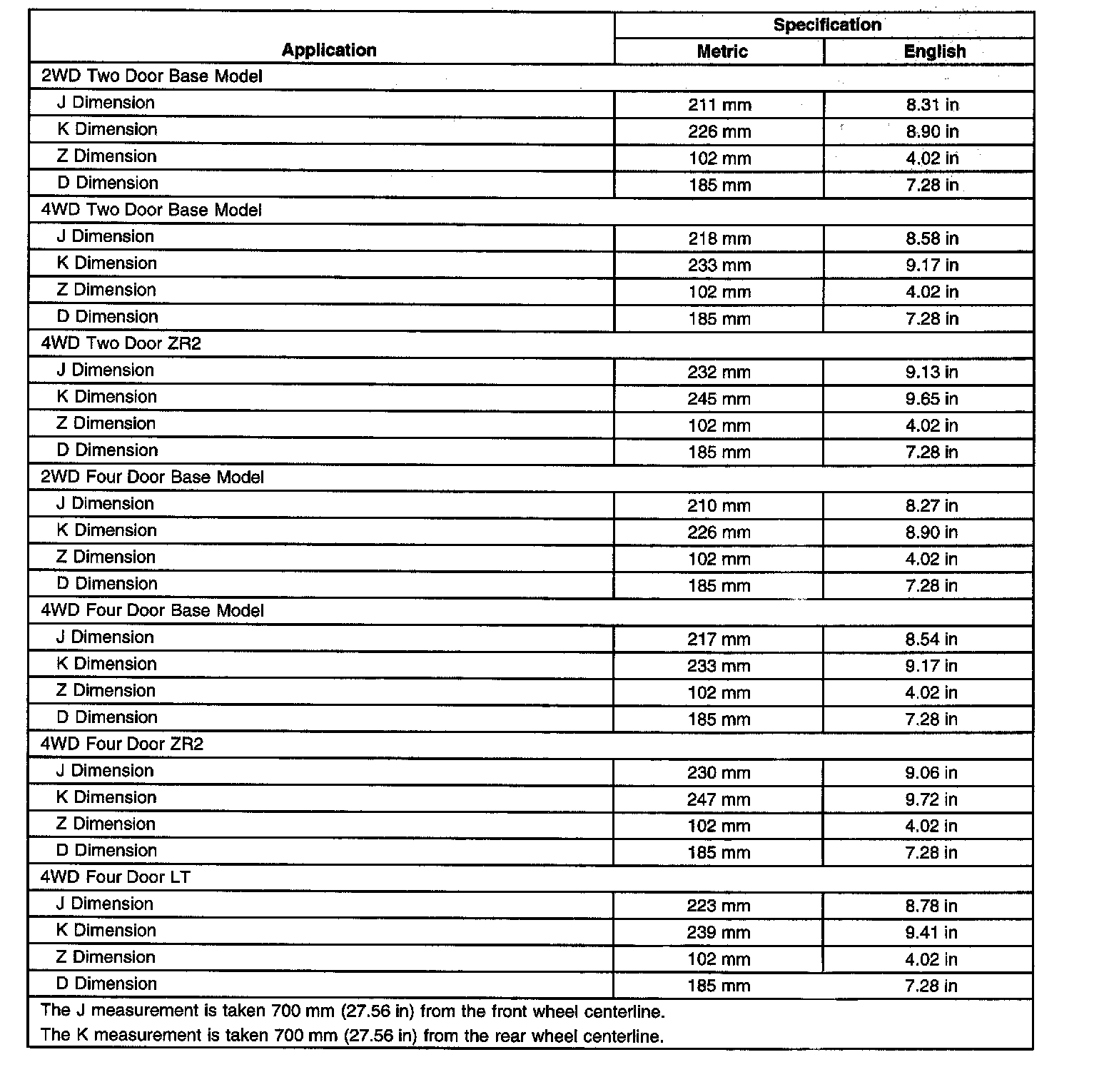 Ride/Trim Height Specifications