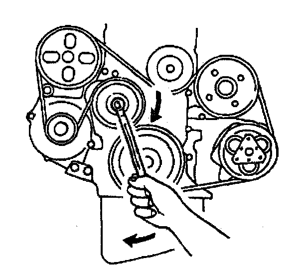 3. With pressure applied to the wrench, and tension relieved from the drive belt, remove the accessory drive belt.