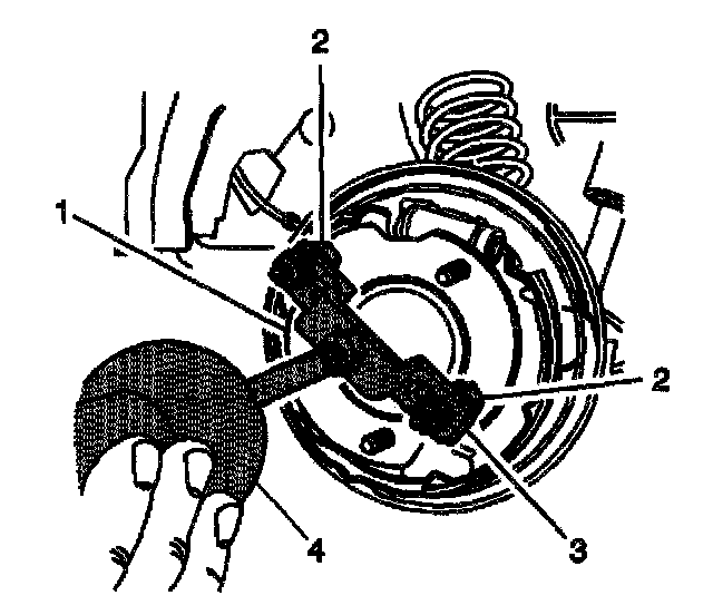 2. Use a wheel nut (2) and a washer (3) in order to install the wheel stud.
