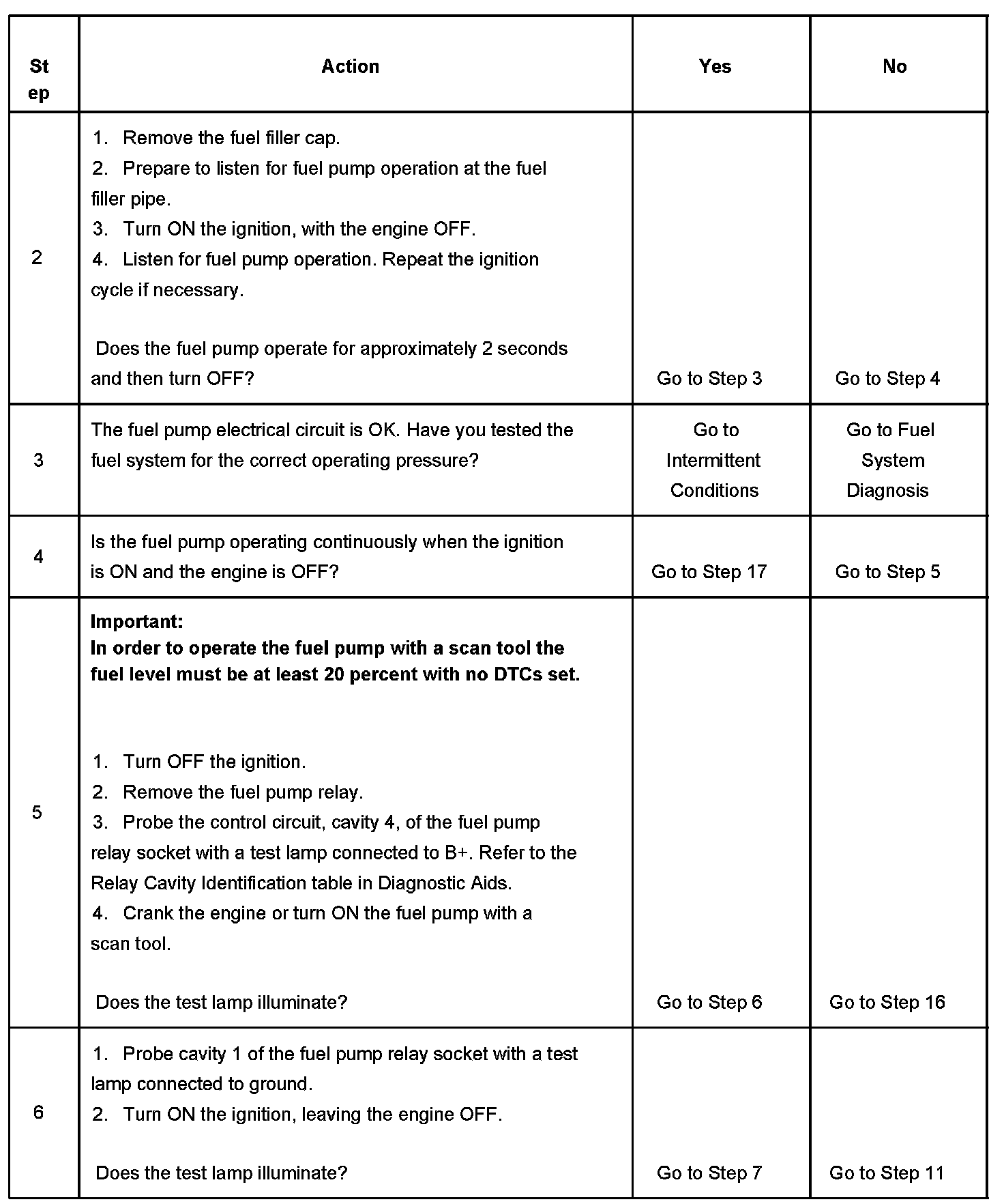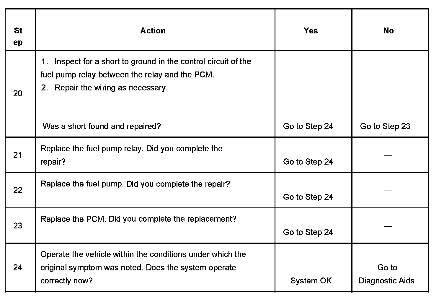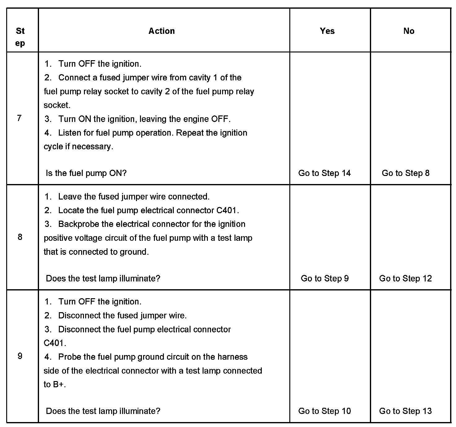 7. This step determines if the coil side of the fuel pump circuit is operating correctly.