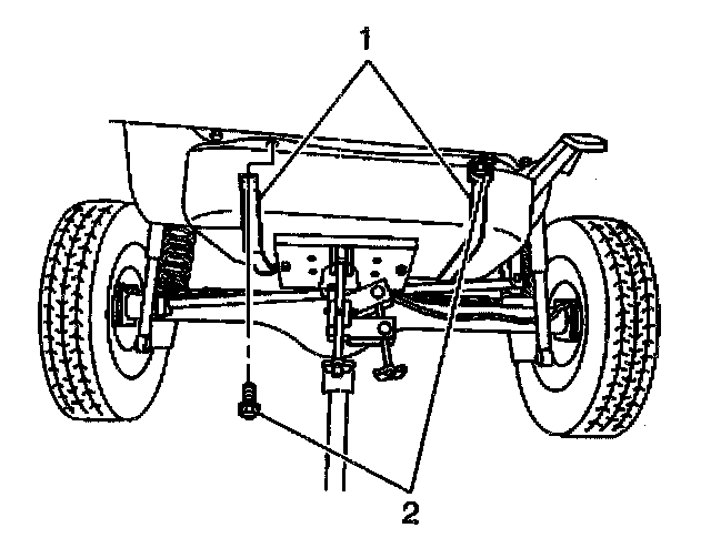10. Remove the 4 bolts (2) and the 2 fuel tank straps (1) from the vehicle.