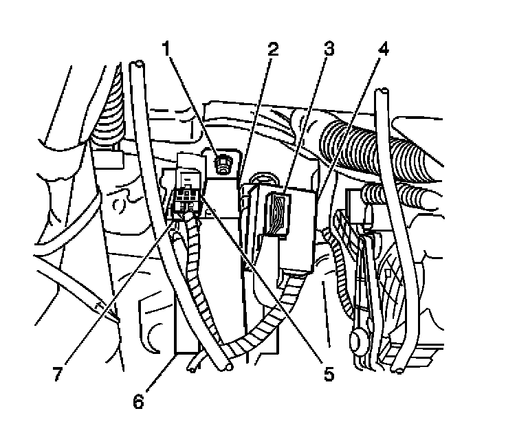 1. Install the DRL control module (4) to the vehicle. Secure the module with the mounting bolt.