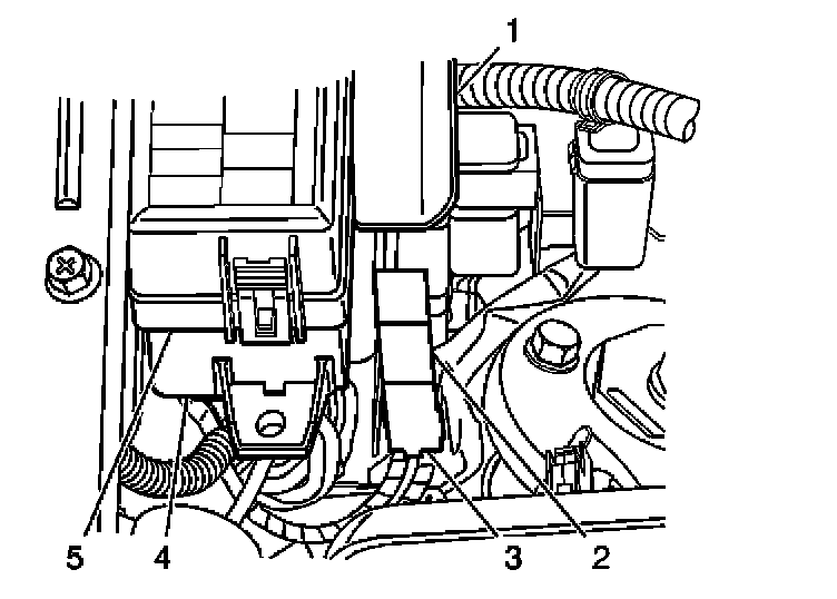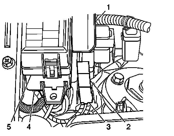 2. Remove the horn relay case (1) that retains the horn relay (2) to the bracket.