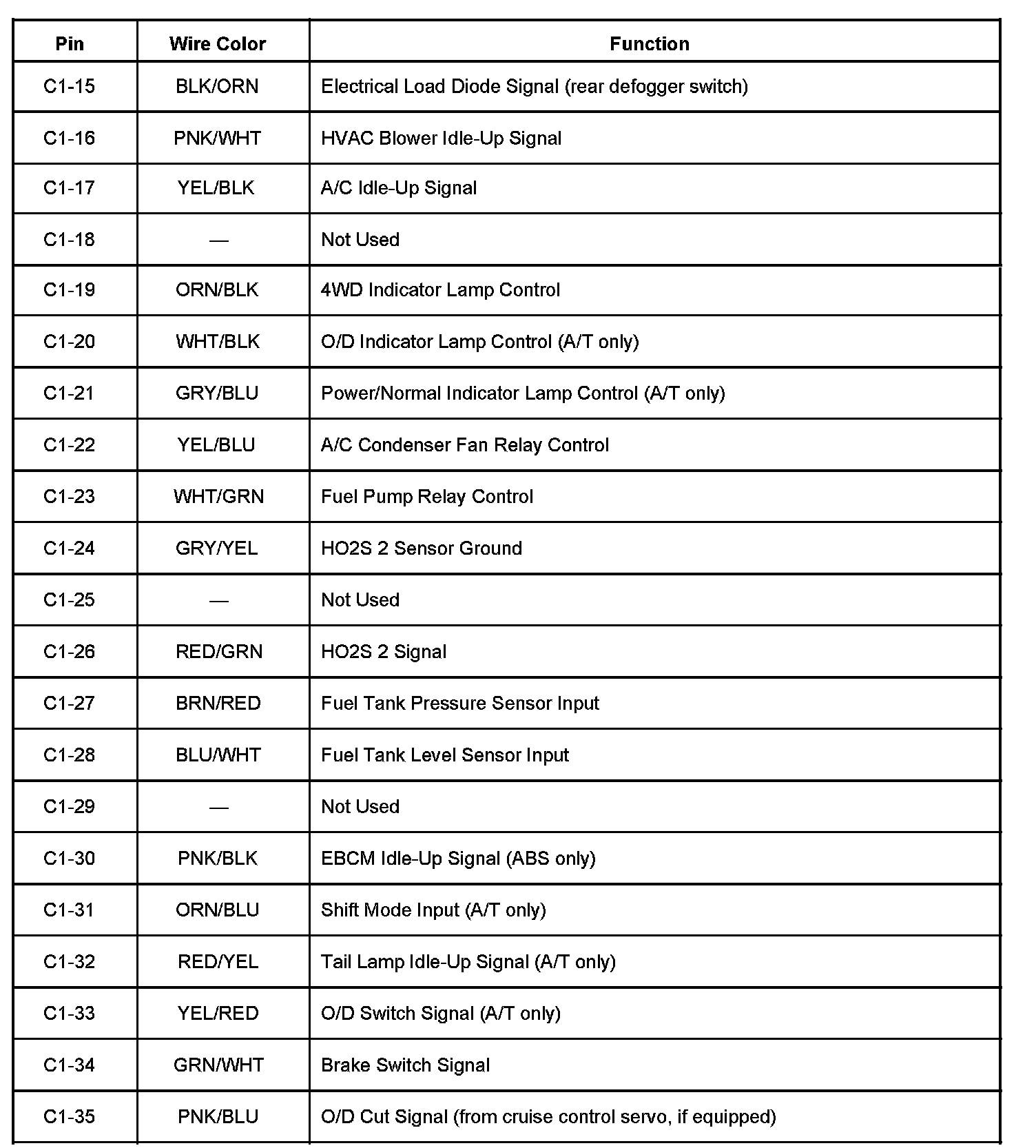 Back View of the PCM Connector C1