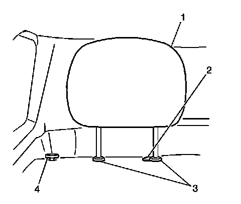 1. Push in the rear seat head restraint release button (2) and remove the rear seat head restraint (1) from the guides (3).