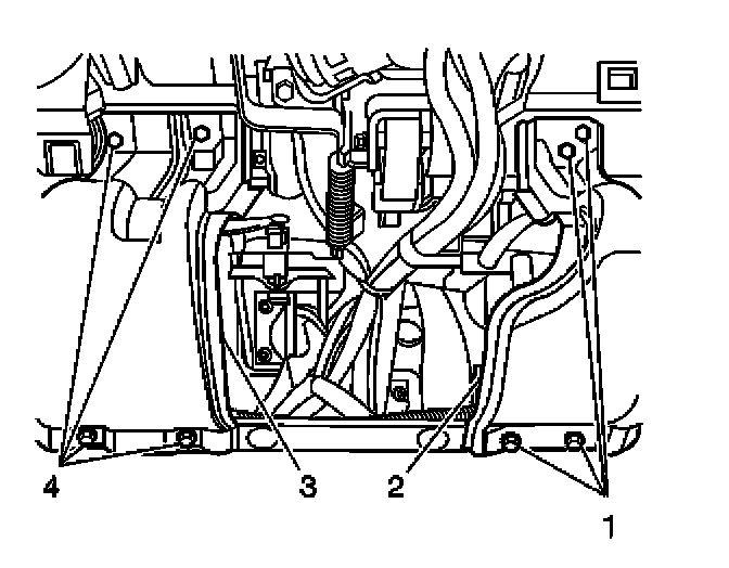 1. Install the IP drivers knee bolster panel (2 or 3). Secure the panel with the 4 bolts (1 or 4).