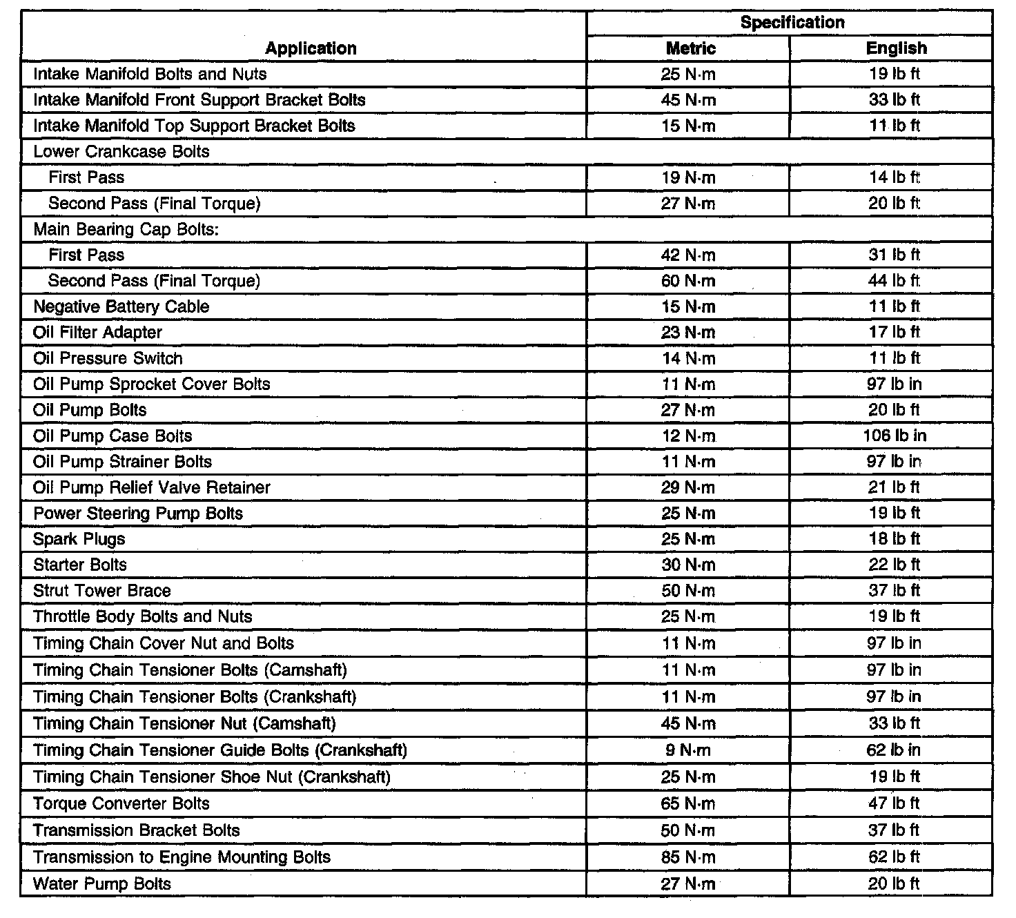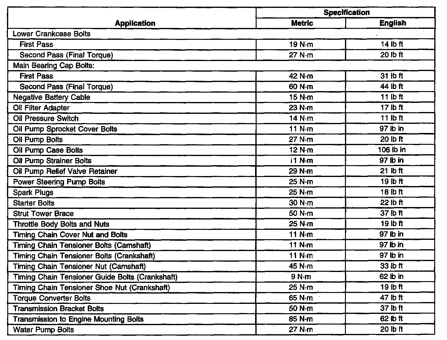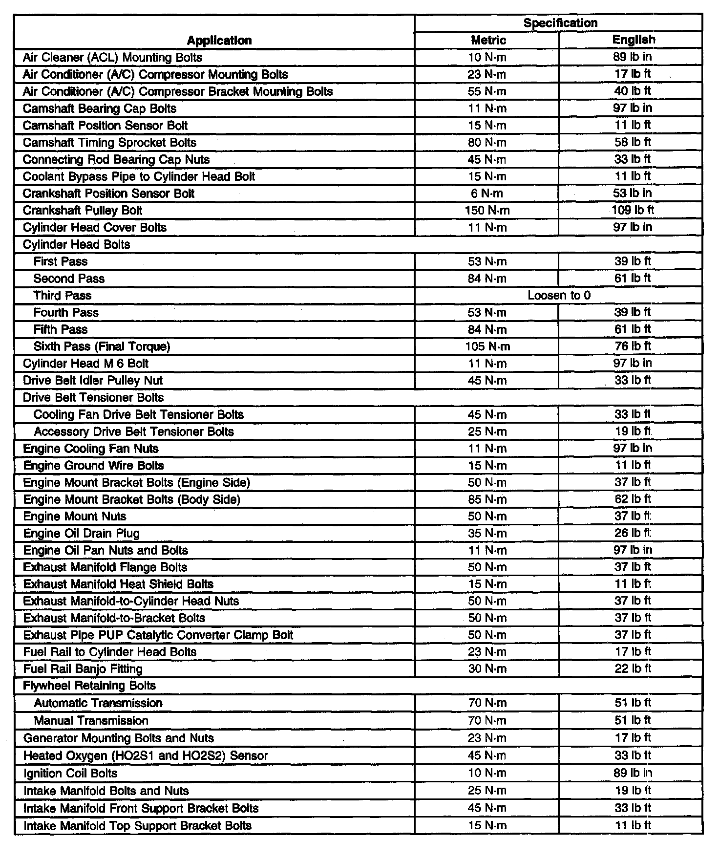 Engine Mechanical - 2.0LFastener Tightening Specifications