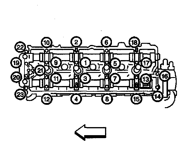 3. Loosen the cylinder head bolts in the sequence shown to 0 torque.