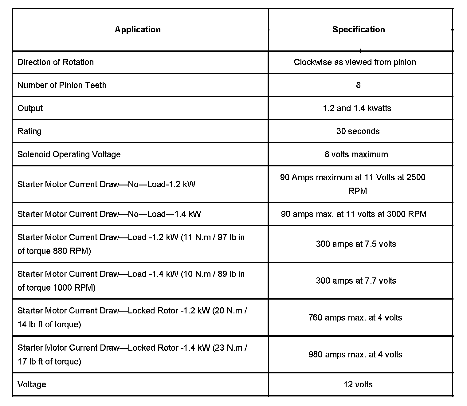 Starter Motor: Specifications