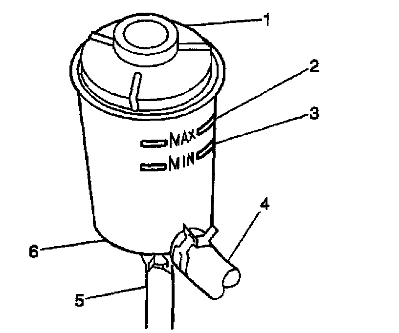 3. Use a siphon in order to remove the power steering fluid from the reservoir (6).