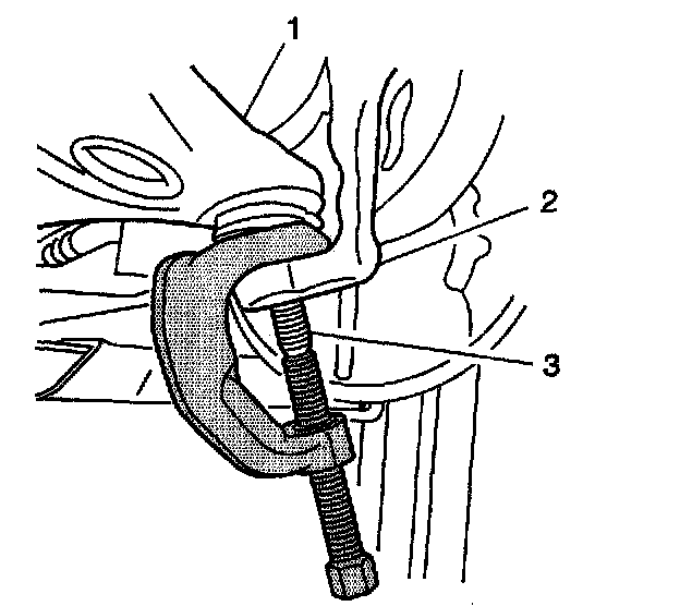 7. Use the J 43631 in order to separate the ball joint from the knuckle (2).