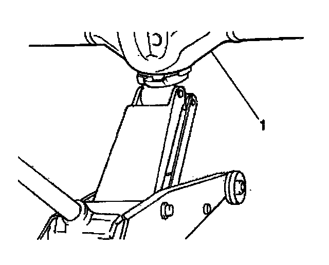 2. Use a floor jack in order to support the rear axle housing (1).