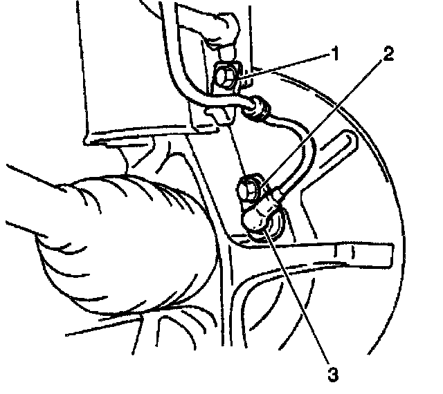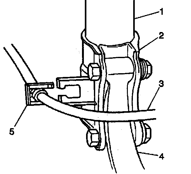 4. Install the brake hose (3) to the strut bracket (2).