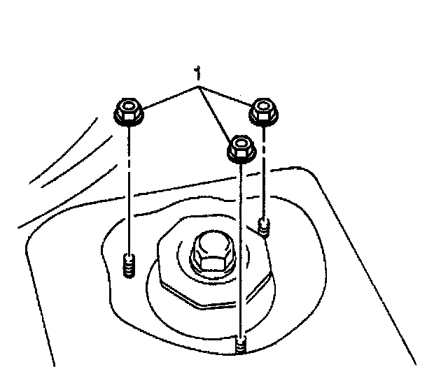 1. Install the strut. Holding the strut in place, install the 3 strut support nuts (1).