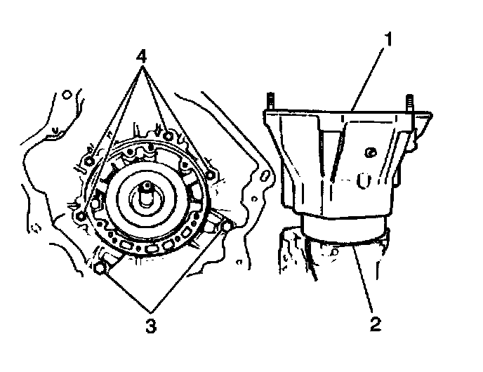 3. Install the torque converter housing (1) to the transmission case.