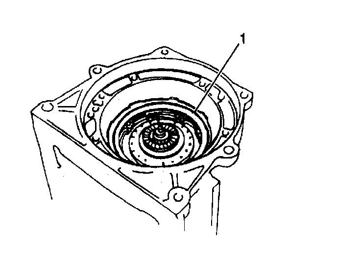 1. Rotate the transmission to the upright position.2. Measure the height of the forward clutch (2) against the transmission case (1) in order to ease in assembly.