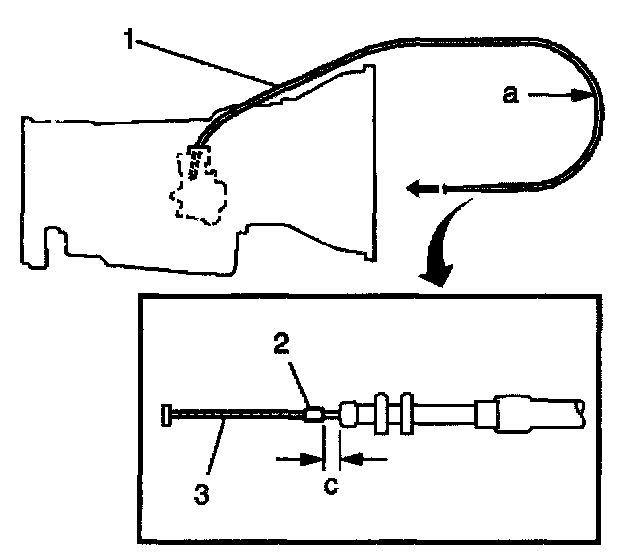 10. Pull the inner cable (3) with the force of 2 Nm (0.45 ft. lbs.) to remove the slack in the cable.