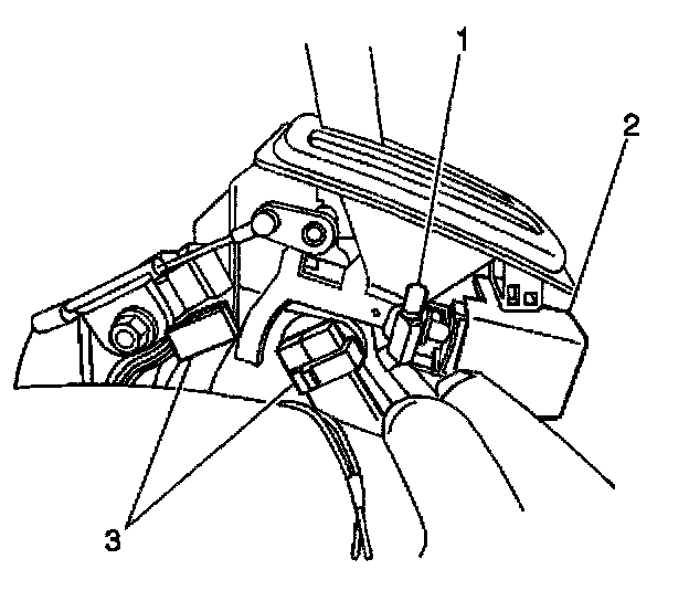 5. Remove the shift lock solenoid connector (3) from under the carpet.