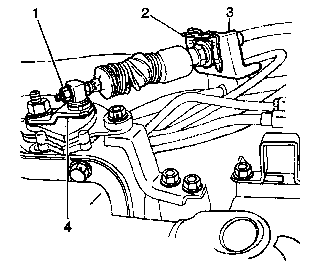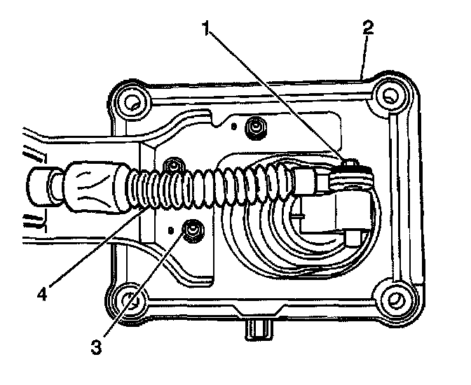 6. Install the shift select cable (4) into the shift select cable bracket at the transmission.