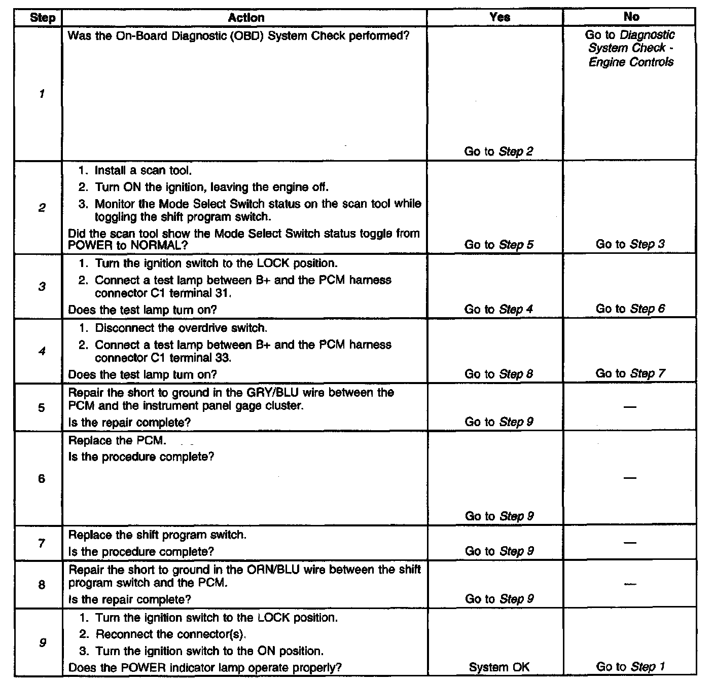 ^ A short to ground in the shift mode signal circuit between the Power/Normal switch and the PCM.