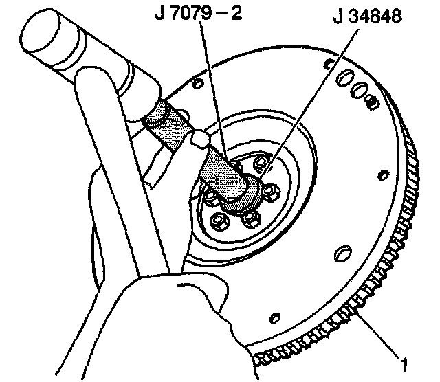 1. Install the clutch bearing into the crankshaft using the J 34848 with the J 7079-2.