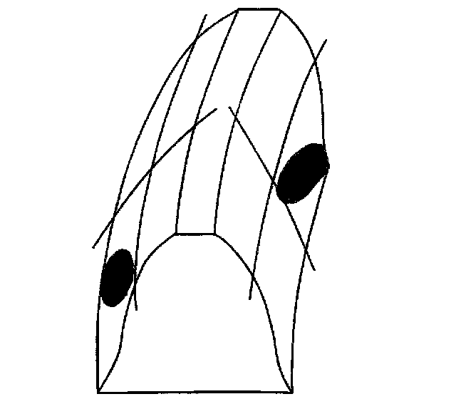 ^ A coast pattern from heel (2) to toe (1) has a normal drive contact.