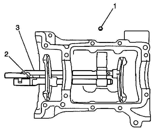 Important: The reverse gearshift fork roll pin (3) is 5 mm (0.187 inch) longer than the low speed gearshift fork roll pin (2) and the high speed gearshift fork roll pin (1).