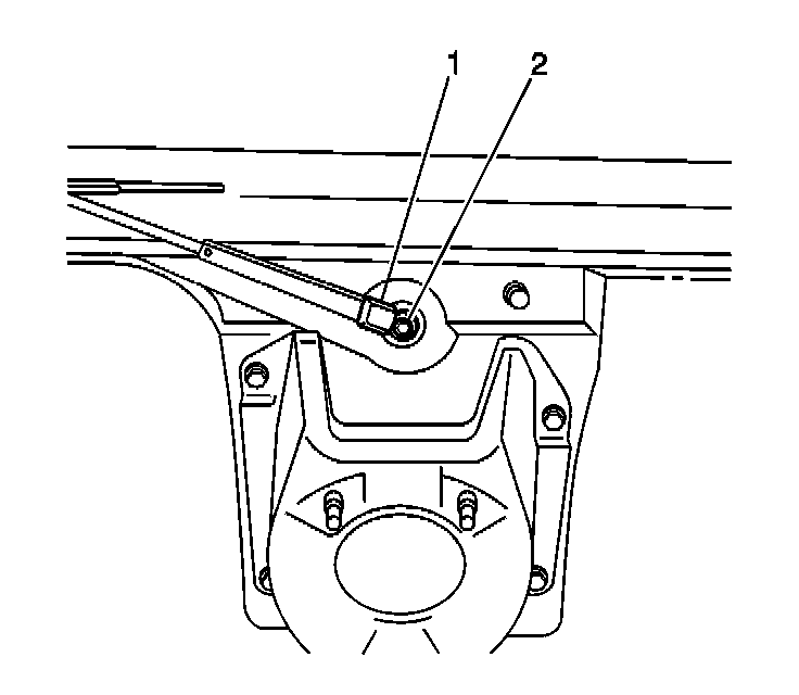 3. Remove the rear window wiper arm retaining nut (2) that retains the rear window wiper arm.
