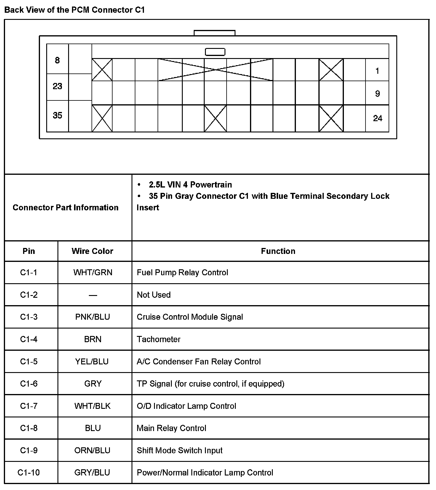 Back View Of The PCM Connector C1 Part 1: