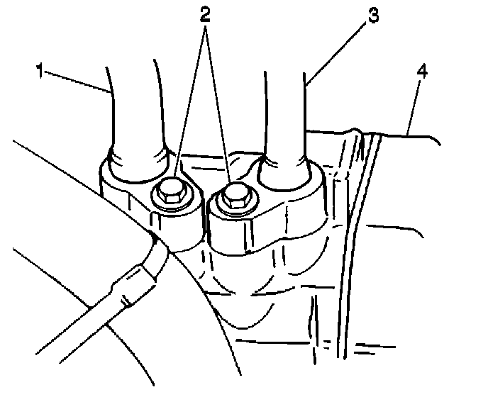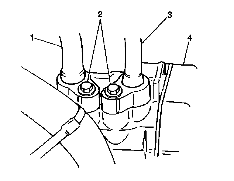 3. Connect the discharge and the suction hoses to the compressor. Secure with two bolts (2).