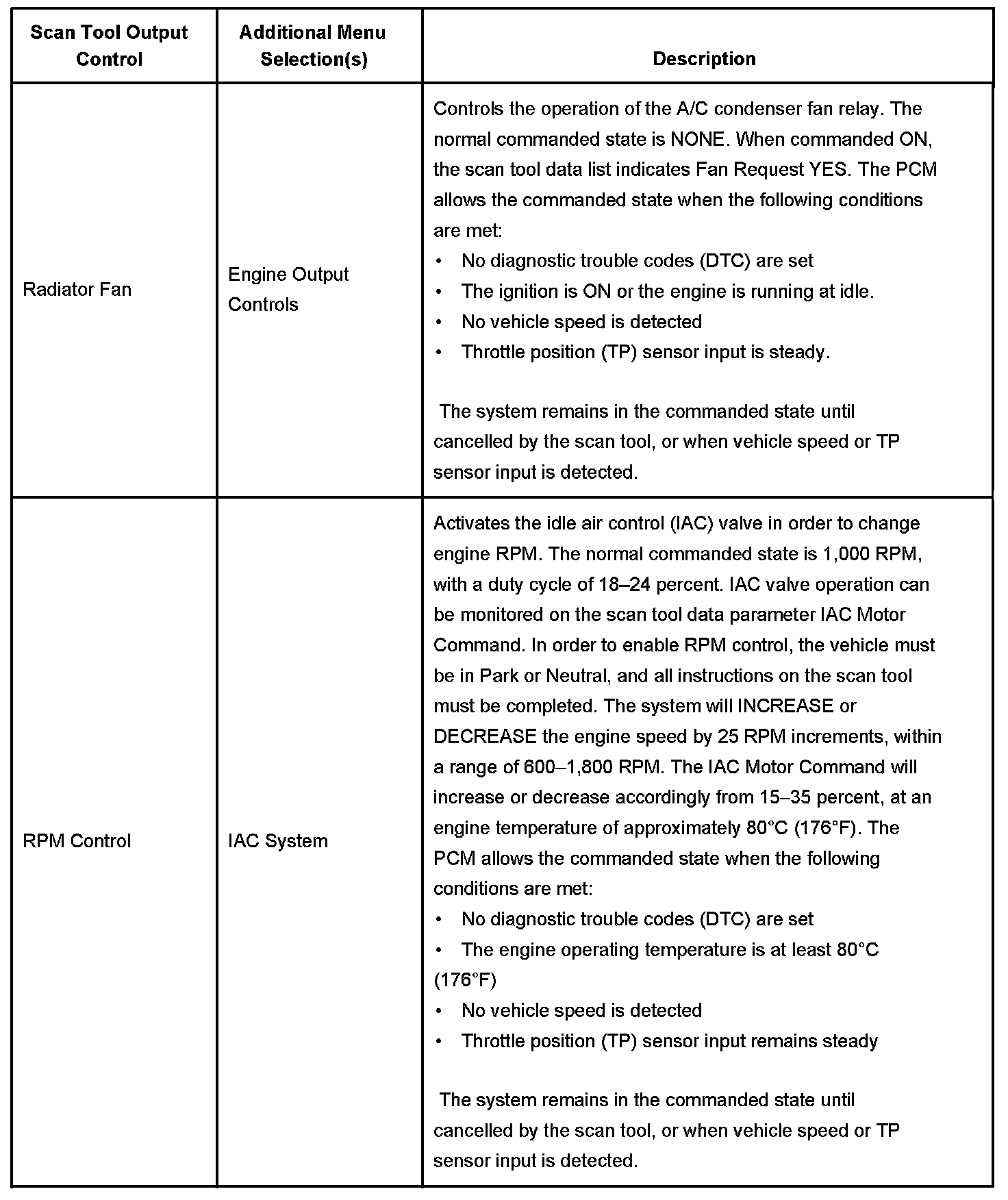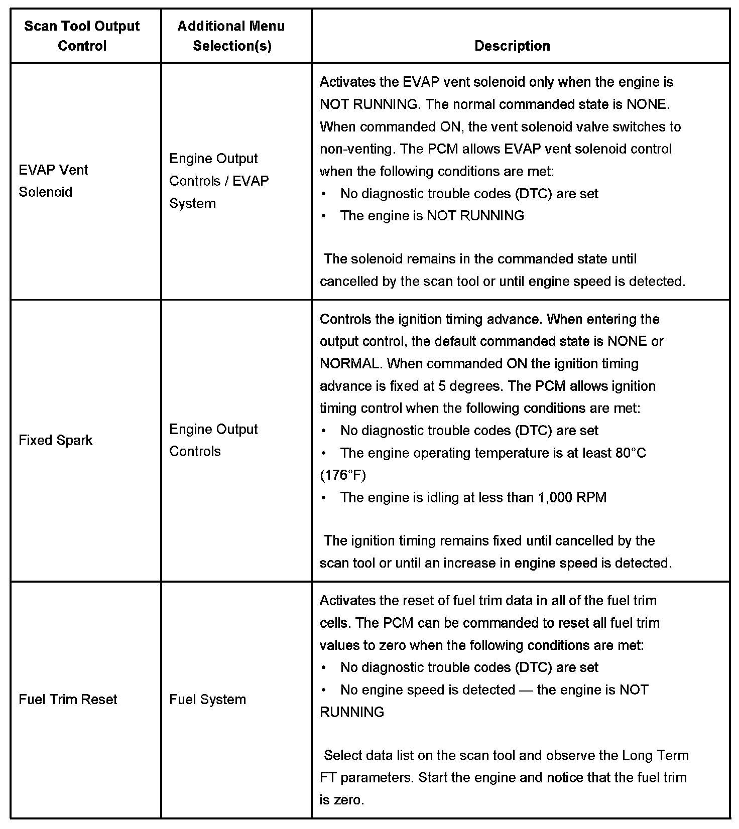Scan Tool Output Controls