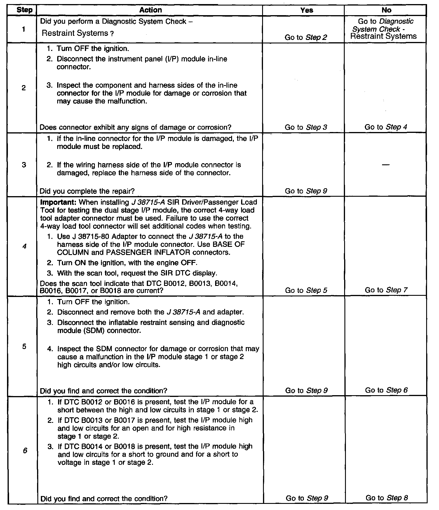 - DTC B0012 (stage 2) or B0016 (stage 1) will set when the I/P module deployment loop resistance is less than 1.3 ohms for 500 milliseconds.
